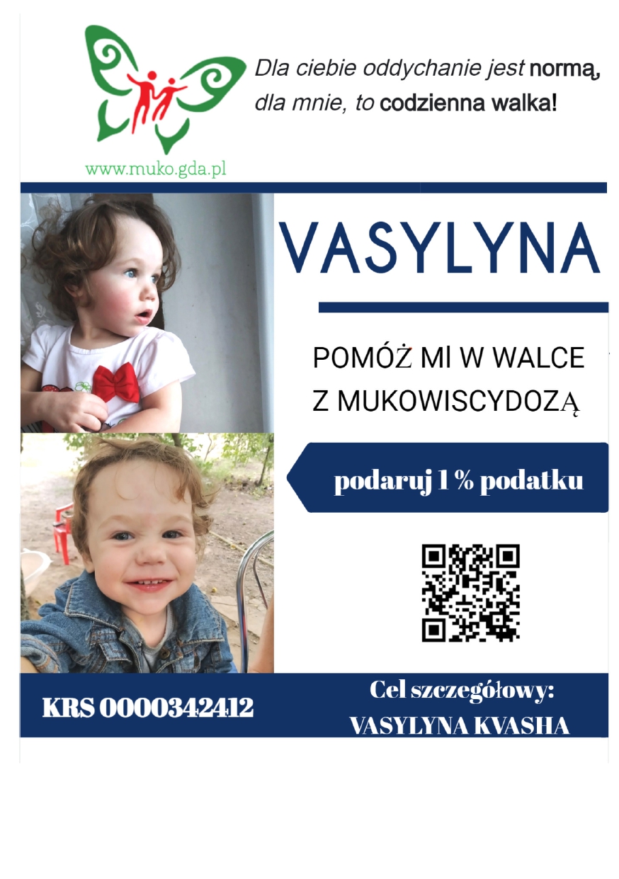 Wesoła, aktywna i ciekawa świata dziewczynka Vasylyna od urodzenia musi walczyć o szansę na długie życie. Na początku, trudna operacja w celu wyeliminowania niedrożności jelit, a potem straszna diagnoza. Mukowiscydoza jest ciężką, genetyczną i nieuleczalną chorobą, która atakuje narządy wewnętrzne i wpływa na funkcjonowanie płuc i układu pokarmowego.
