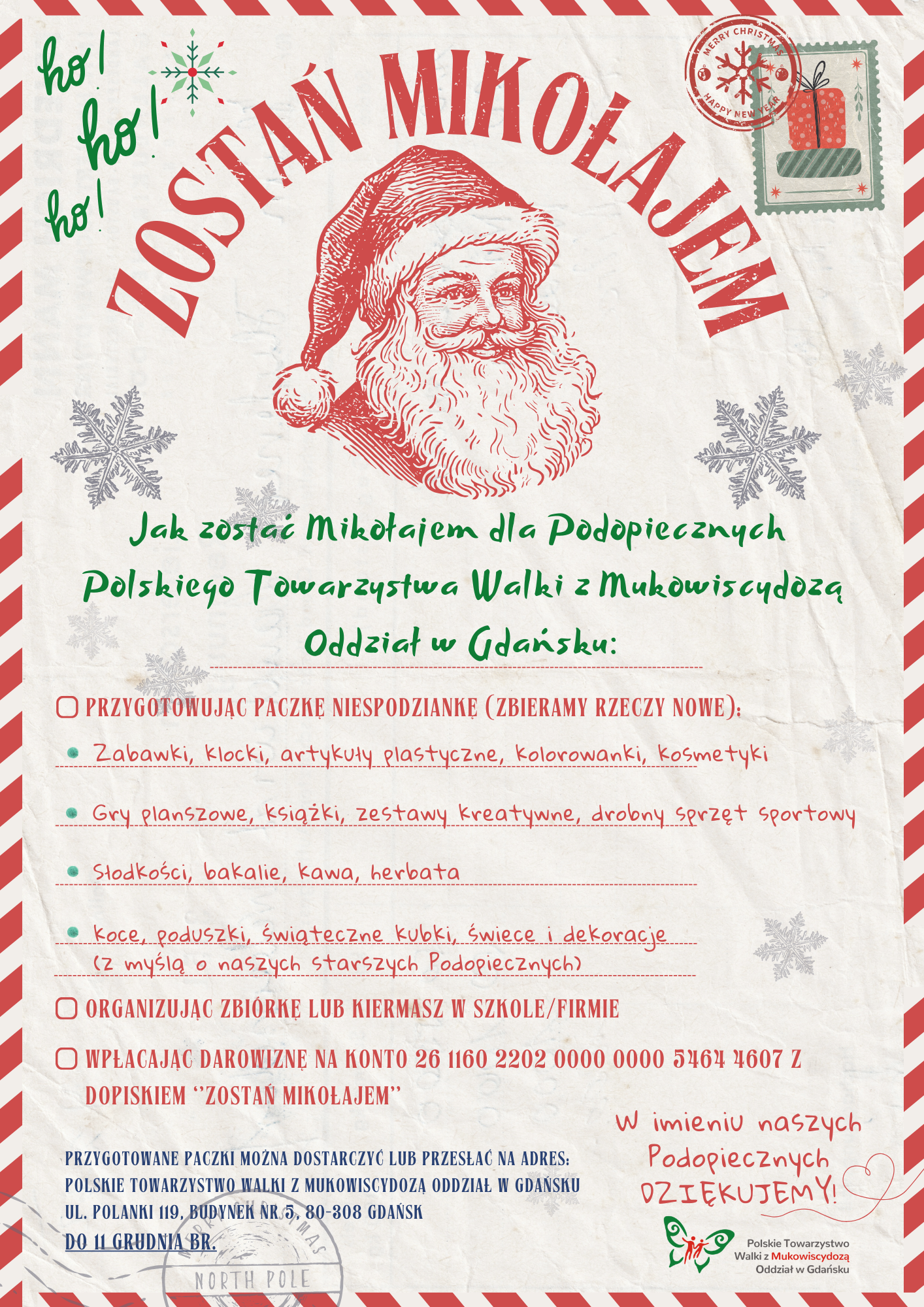 Idą święta a wraz z nimi nasza coroczna akcja ”Zostań Mikołajem” dla podopiecznych Polskiego Towarzystwa Walki z Mukowiscydozą Oddział w Gdańsku